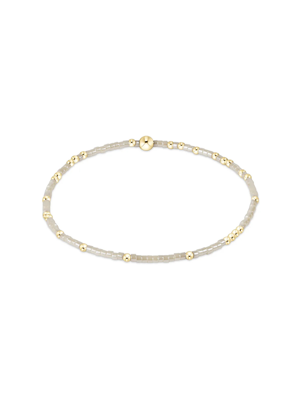 Hand beaded on high performance elastic for a slight stretch to easily roll on and off your wrist