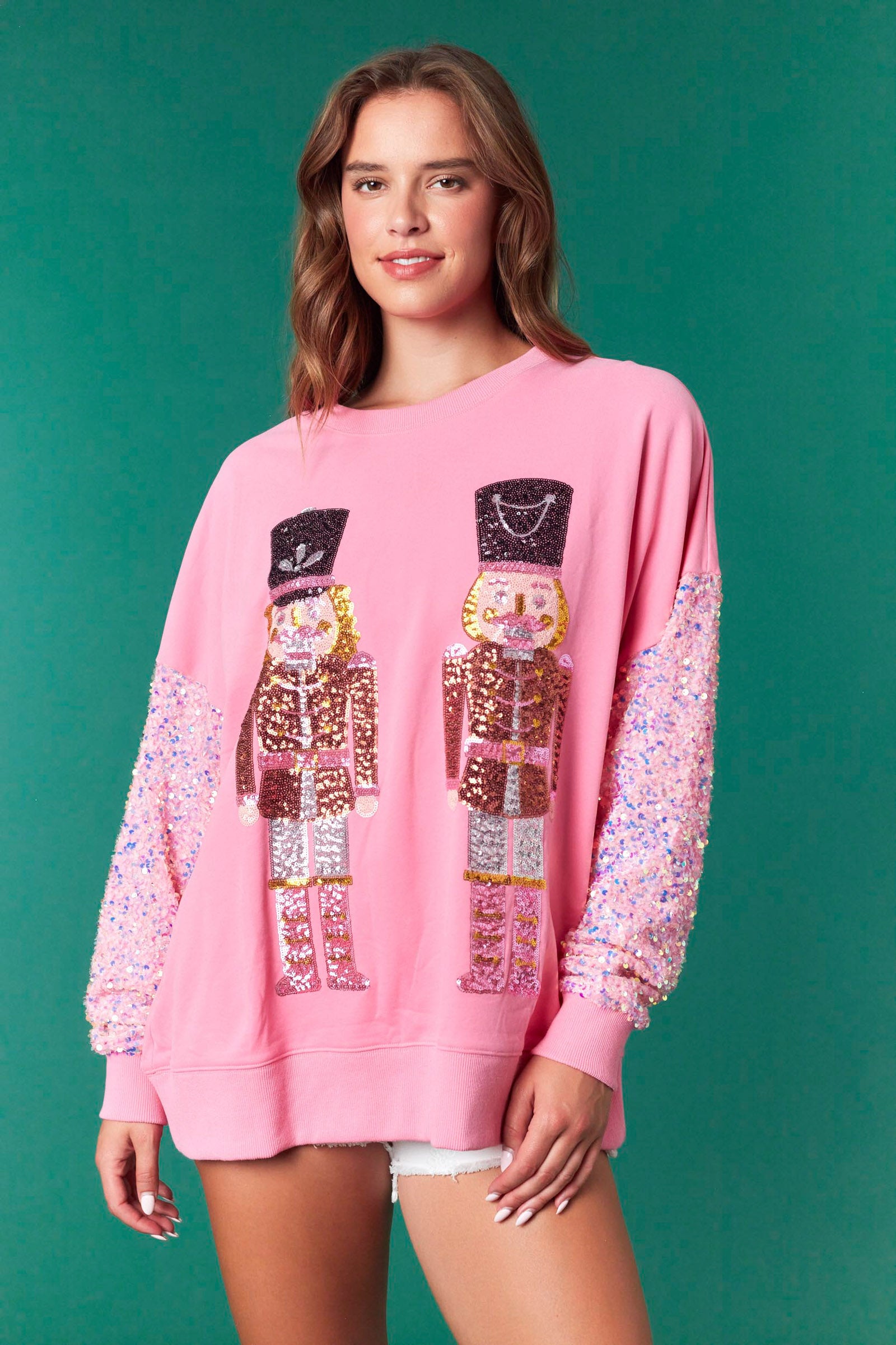 PINK NUTCRACKER SEQUIN SLEEVE TOP